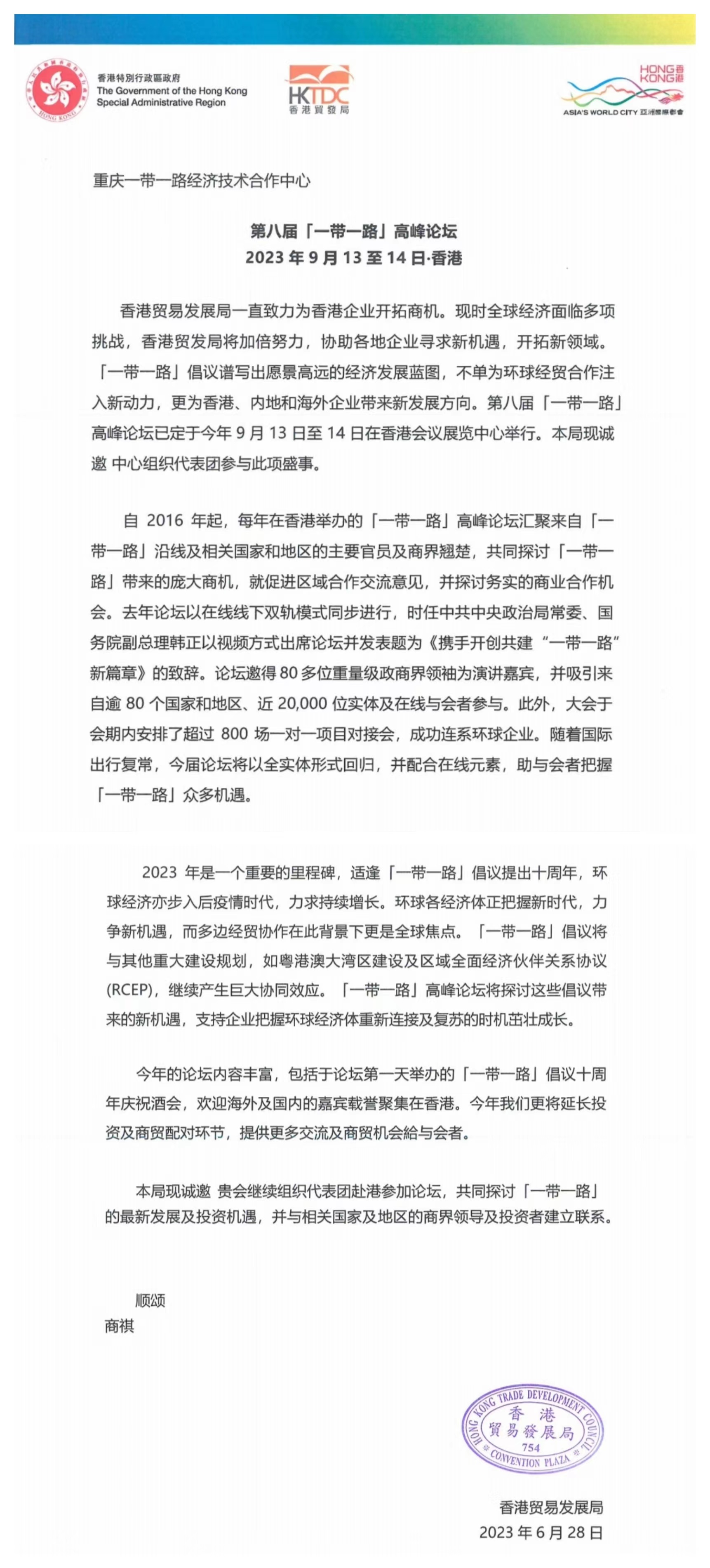 香港特别行政区政府、香港贸易发展局《邀请函》